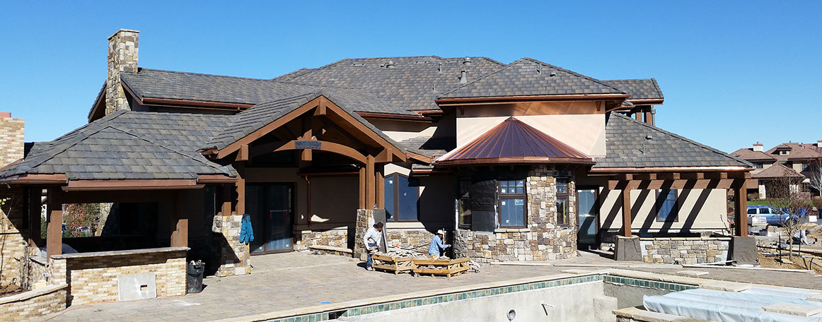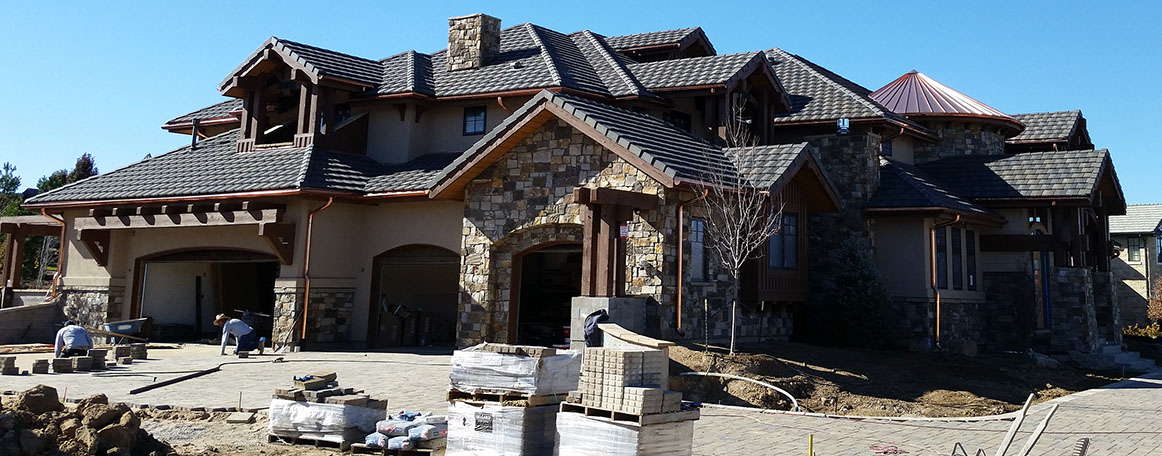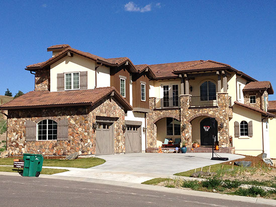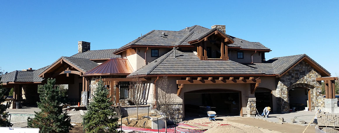 New Vision Roofing is the roofer of choice for custom home builders in the prestigious Solterra subdivision of Lakewood. Featuring Boral Saxony Slate Tile, Boral Villa 900 Series Tile, and custom sheet metal turrets.