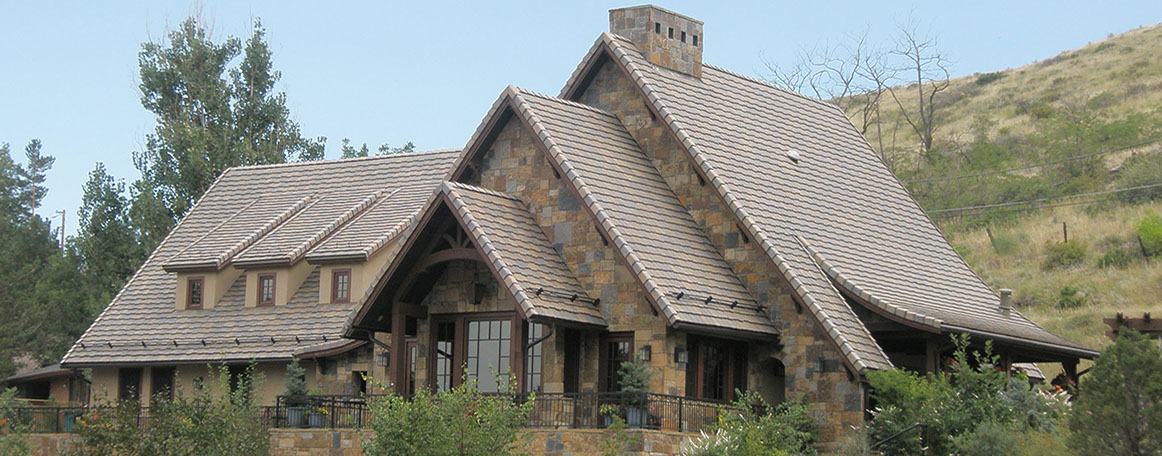 Mountainside spacious custom home featuring Shake Style Concrete Tile with custom sheet metal chimney shrouds.